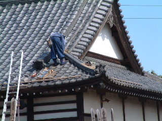 アンテナの線で軒瓦がずらされて!!