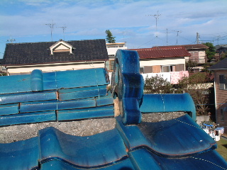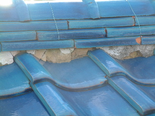 鬼瓦が前にずれて!!漆喰が剥がれて!!